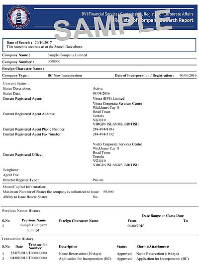 A BVI Company search is a document issued by the BVI Registry of Corporate Affairs (also named ROCA) either in paper or electronic format. We also include copies of all public documents filed by the company to the Registry